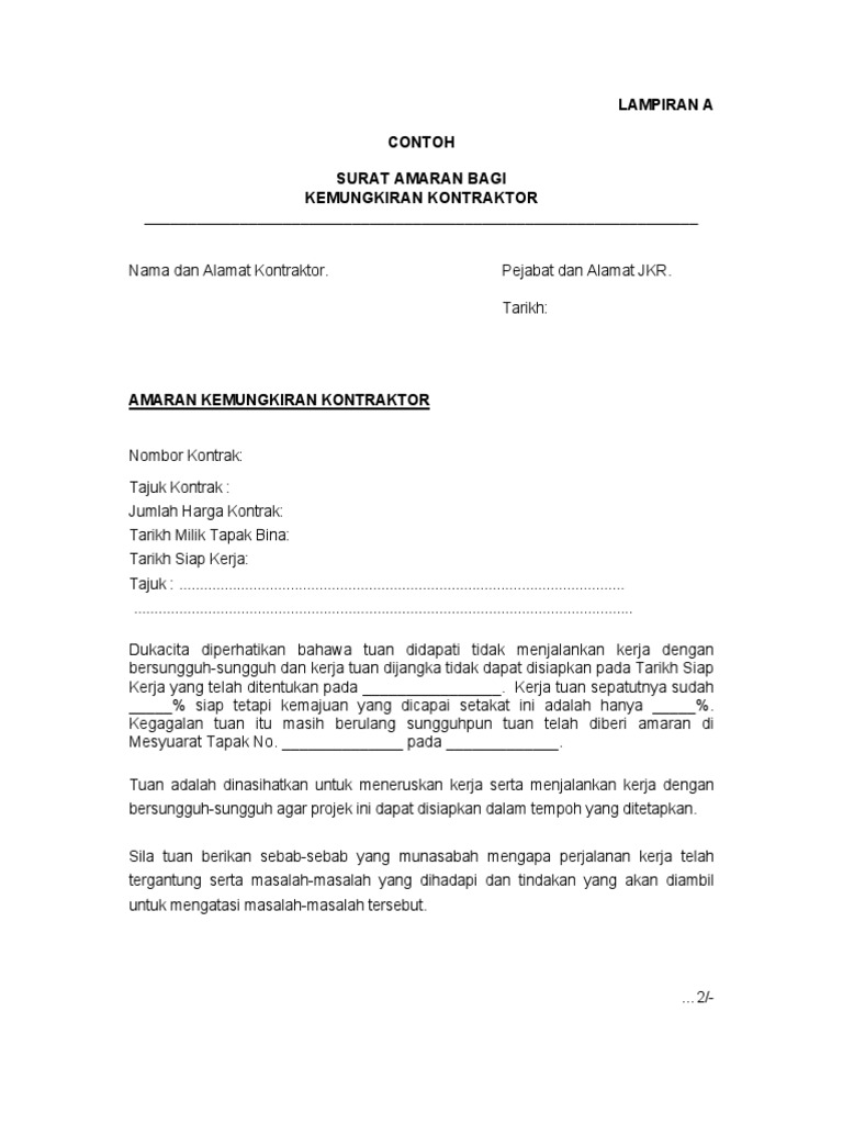 Contoh Surat Amaran Ponteng from cdn.slidesharecdn.com Begitulah setelah upacara perkawinan dilangsungkan dan para tamu. Jan 14, 2014 · contoh: Proposal ini tentang membuka usaha clothingan yang saya yakini mempunyai prospek dimasa yang akan datang dan mampu bersaing dalam dunia bisnis. "majlis kerja tertinggi berhak menangguhkan pemilihan di peringkat majlis kerja tertinggi, bahagian dan cawangan. Kerosakan harta benda disebabkan risiko khusus kemalangan atau kecurian 28. Sep 10, 2013 · kini, setelah mendapat surat undangan perkawinan yang dikirim ong samkongcu, tak heran kalau para jago segera melakukan perjalanan untuk datang. Sebagai contoh, anda mungkin tidak mampu membayar hutang anda kerana kehilangan kerja dan tidak mempunyai pendapatan. Penangguhan ini tidak boleh lebih daripada lapan belas (18) dari tarikh pemilihan yang sepatutnya diadakan.