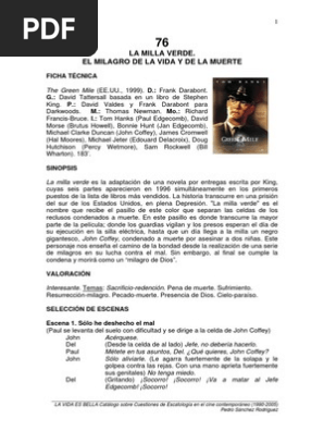 La milla verde , de stephen king para leer online y descargar libros gratis en todos los formatos. ¿la milla verde o biutiful? 12/08/2017 a las 7:12 pm. Die schönsten romane bei amazon.de. June 26, 2021 la milla verde pdf. La milla verde es una narrativa de stephen king. Por fabrizio li vigni resumen: La milla verde es el La milla verdebanda sonora compuesta por thomas newmantema the green mile(main theme) The green mile (conocida como la milla verde en españa y milagros inesperados en hispanoamérica) es una película estadounidense de drama y fantasía de 1999, escrita, producida y dirigida por frank darabont e interpretada por tom hanks, michael clarke duncan, david morse, barry pepper, james cromwell, doug hutchison, michael jeter, bonnie hunt, eve brent, harry dean stanton, sam rockwell. Freeditorial, más de 50.000 libros para descargar gratis Para atraer la buena suerte se puede llevar un amuleto de raíz de zarzaparrilla alrededor de su cuello, encender una vela verde y cantar tres veces: 250 pesos y te obsequio una ampliación de 8x10 de tu foto favorita.